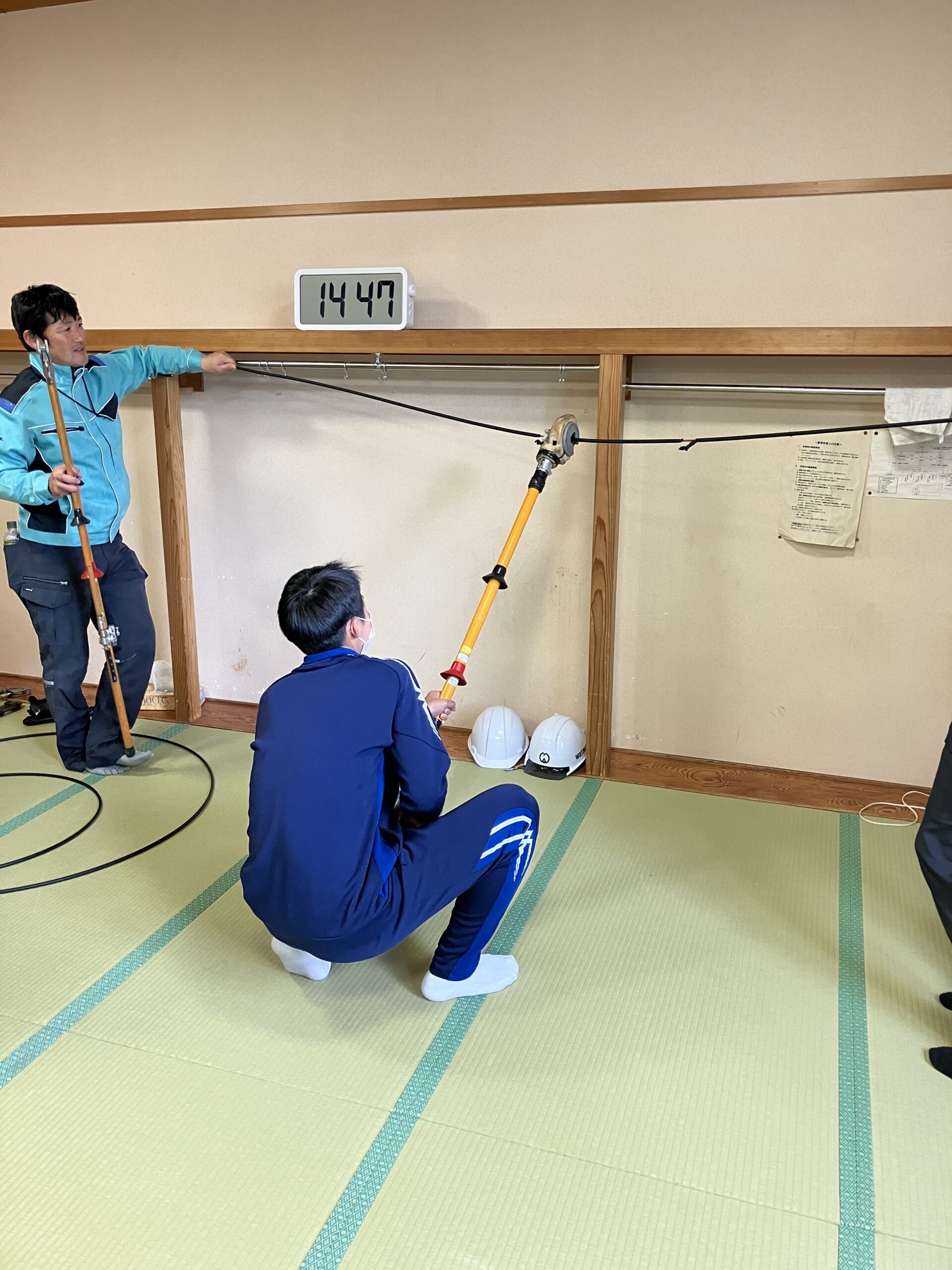 しかし、屋内ではハーネスの装着体験や配電線の皮むき作業にチャレンジしてもらい、初めての作業に真剣な表情で取り組む姿が印象的でした🛠️🔌